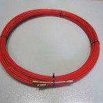 Применяется строителями и монтажниками для протяжки витой пары и других видов кабеля через трубы, металлорукава, короба и каналы при прокладке линий компьютерной и телефонной связи, электропроводки, при установке домофонов, видео и аудиосистем, линий охранной сигнализации в офисных и жилых зданиях. Устройство состоит из стеклоплатикового прутка* с защитной оболочкой из износостойкого полиэтилена высокой плотности. Диаметр прутка с оболочкой 3,5 мм. На один конец прутка наклеивается латунный наконечник, на который навинчивается жесткая или гибкая насадка в зависимости от условий протяжки. На второй конец наклеивается насадка*заглушка. В свободном положении пруток приобретает прямолинейное положение за счет упругих сил и сравнительно легко протягивается вручную по трубам, металлорукавам, коробам и др. Минимальный радиус изгиба прутка 25*30 мм.